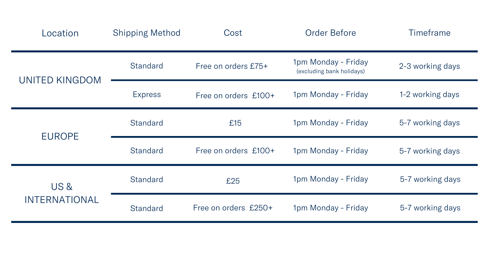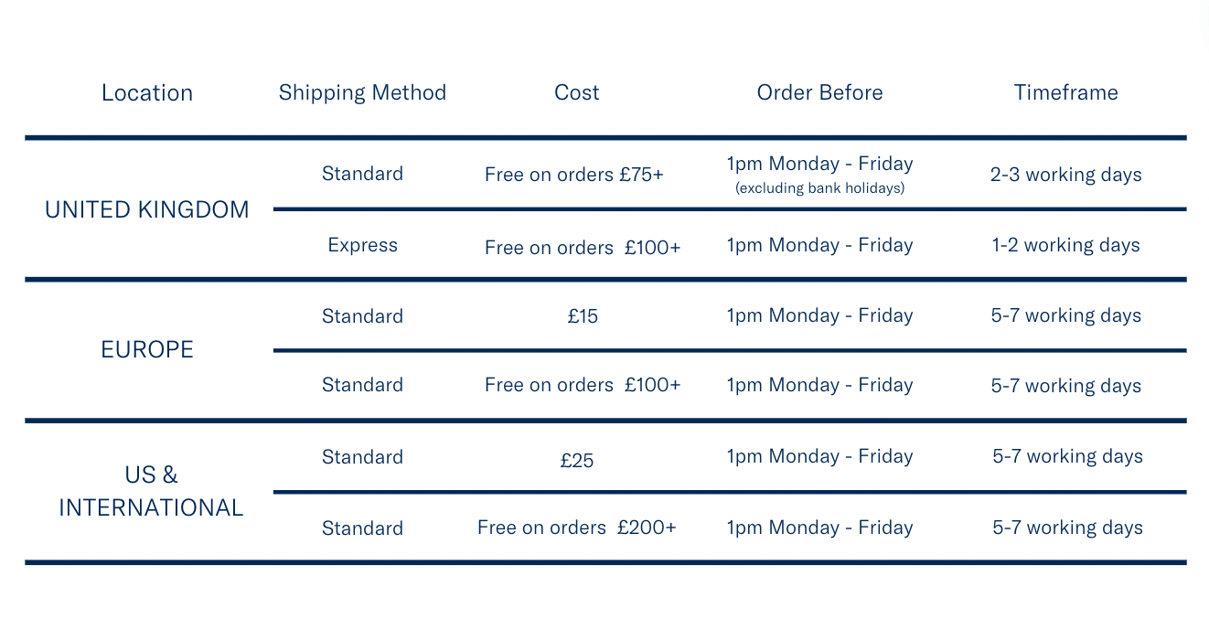 If you have selected our express delivery option, orders must be placed by 1pm (Monday-Friday) to be delivered on the next business day. (UK only)