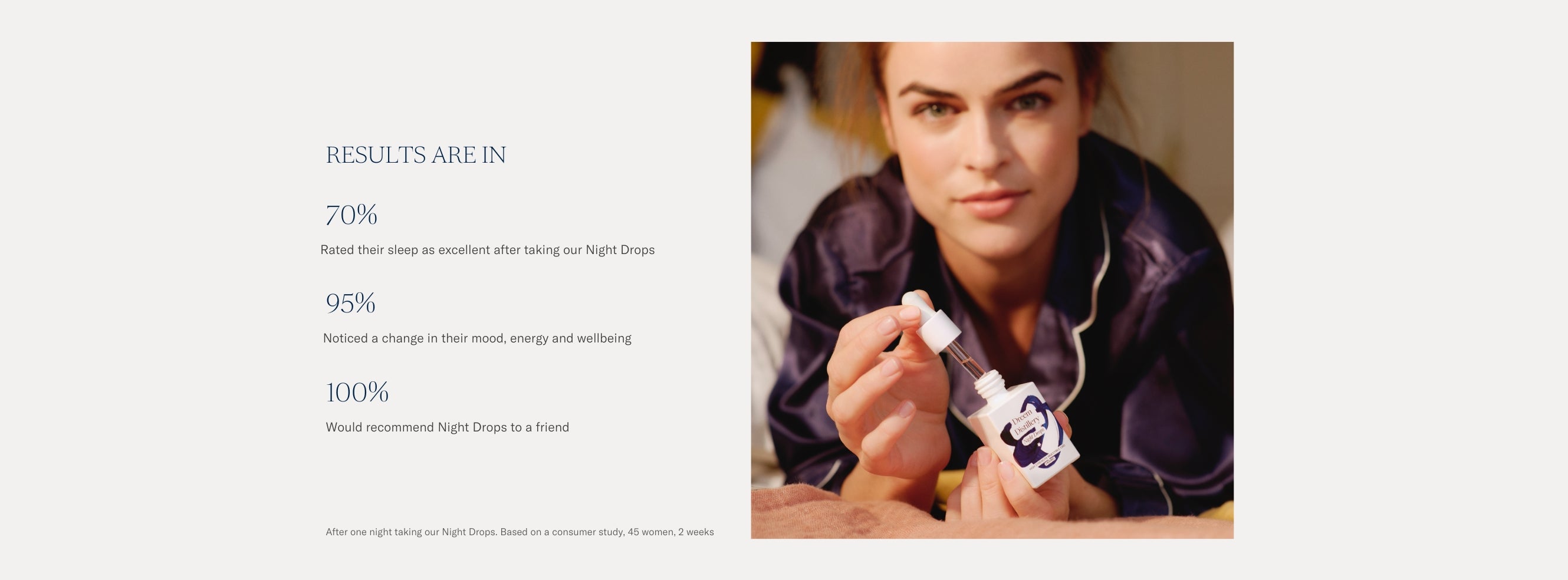 Our bedside table essential, our award-winning Night Drops are expertly formulated to help you relax, unwind and drift into a good night’s sleep. We use the pure and potent Dreem Distillery High Grade CBD + our proprietary Super Terpene Blend™ to help you fall asleep faster and wake up feeling refreshed. With a natural peppermint flavour, the formula works swiftly to bring about a soothed, relaxed, and sleepy state just 30 minutes after ingesting.